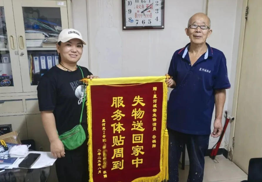 为表彰谷鹆翔拾金不昧、乐于助人的行为,失主特意赠送了一面锦旗,以表达对其高尚品德的由衷感激与赞扬。